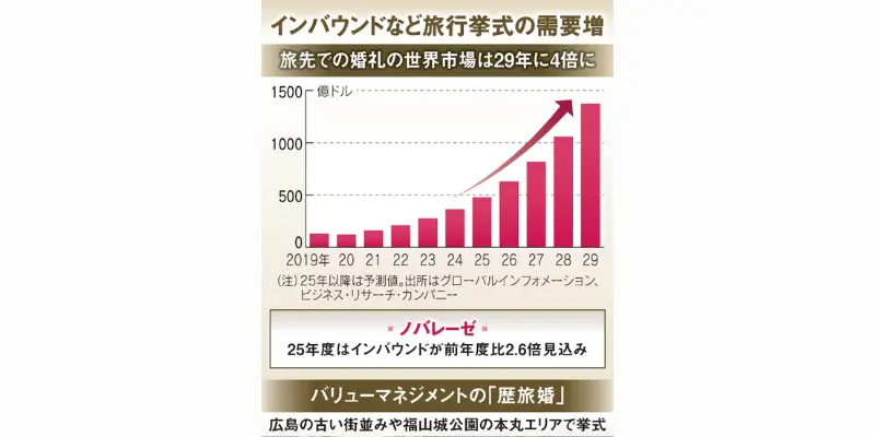 Japan’s Nikkei has spotlighted the booming global destination weddings market, citing research from The Business Research Company. Valued at $36.2 billion in 2024, the market is expected to soar to $137.1 billion by 2029. The article notes that social media is driving international demand, making it easier to plan weddings abroad.